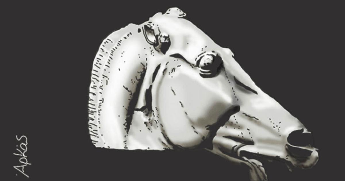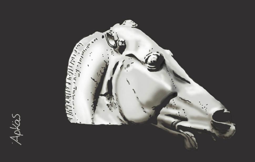 Ο Αρκάς αφιέρωσε το σημερινό του σκίτσο στα Γλυπτά του Παρθενώνα, δημιουργώντας μία κεφαλή αλόγου από την συλλογή των αρχαιοτήτων που βρίσκονται στο Βρετανικό Μουσείο. Γράφει δε «Δεν είναι ιδιοκτησία κανενός. Ανήκουν όμως στον Παρθενώνα που επίσης δεν είναι ιδιοκτησία κανενός»