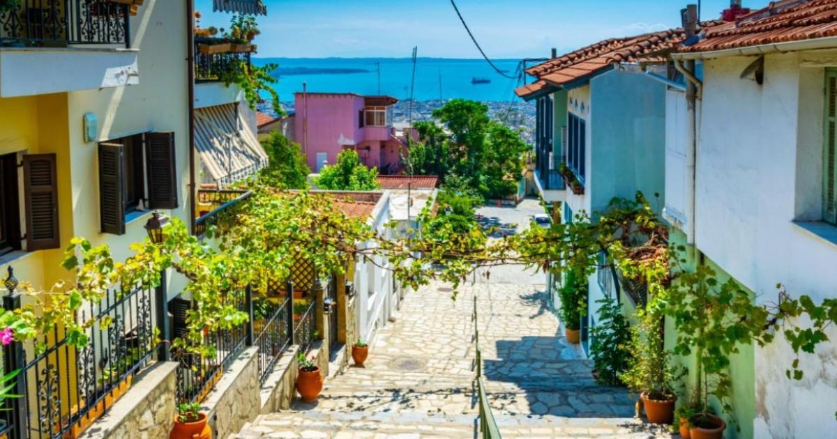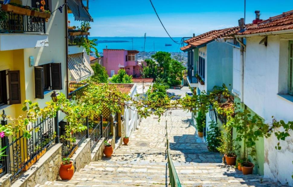 Η Άνω Πόλη της Θεσσαλονίκης είναι χτισμένη σε βραχώδες έδαφος μεγάλων κλίσεων. Εκτείνεται από τη βόρεια πλευρά της οδού Αγίου Δημητρίου ως τα τείχη της Ακρόπολης – Επταπυργίου, ενώ ανατολικά, από τα τείχη επί της οδού Ελένης Ζωγράφου, έως δυτικά στην πλατεία Μουσχουντή.