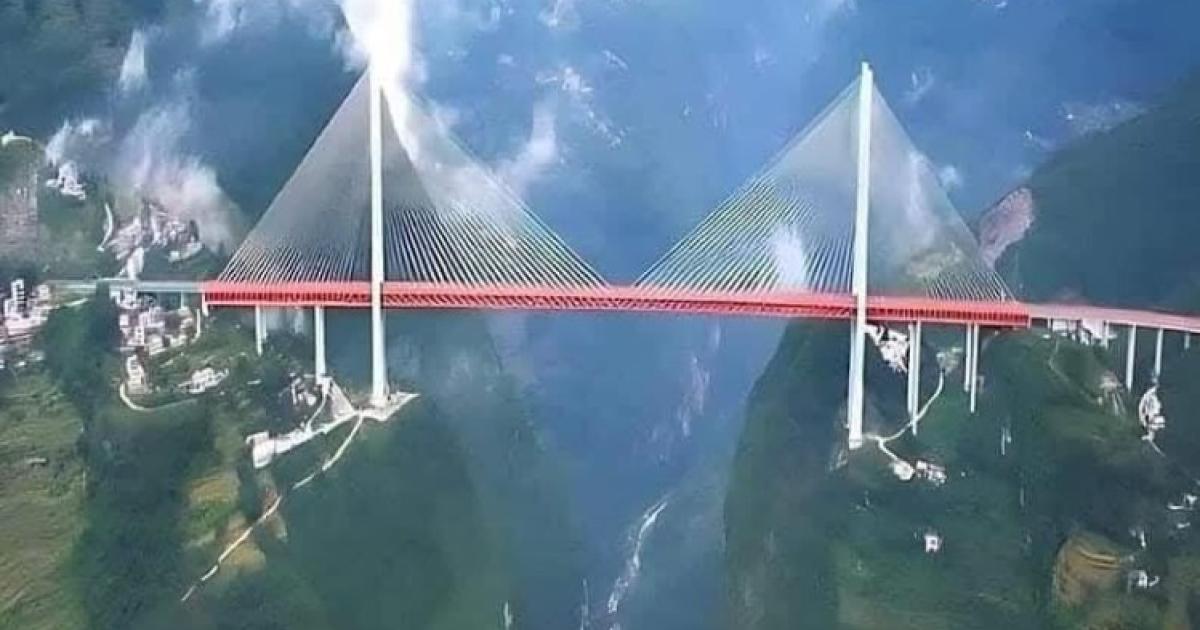 Η εντυπωσιακή γέφυρα είναι κρεμασμένη 565 μέτρα πάνω από τον ποταμό Beipan.