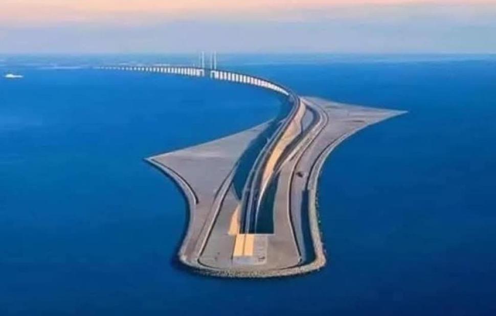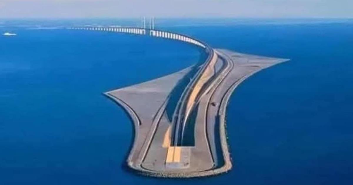 Η γέφυρα που έρχεται από τη Σουηδία μετατρέπεται σε τούνελ κάτω από τη θάλασσα και επανεμφανίζεται στη Δανία. Έχει συνολικό μήκος 16 χιλιομέτρων.