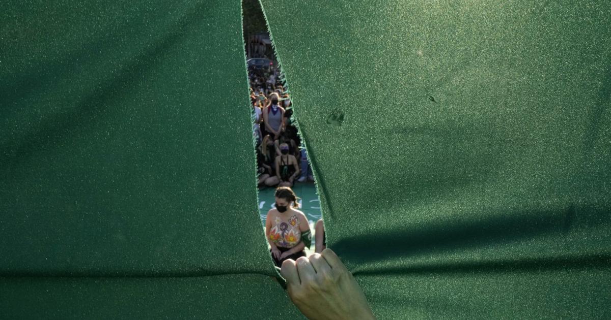 Διαδηλωτές για τα δικαιώματα των αμβλώσεων, σε καθιστική διαμαρτυρία στο Σαντιάγκο κατά τη διάρκεια της παγκόσμιας ημέρας δράσης για την πρόσβαση σε νόμιμες, ασφαλείς και δωρεάν αμβλώσεις