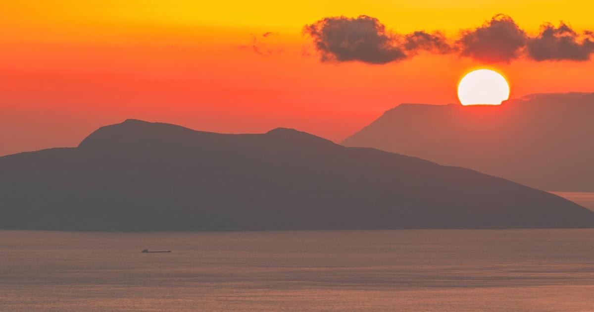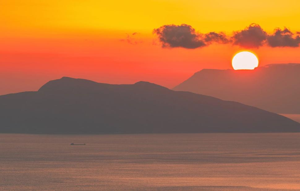 Ηλιοβασίλεμα με φόντο τους Φούρνους και την Ικαρία στο βάθος.