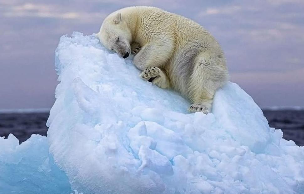 Ο Nima Sarikhani απαθανάτισε την εικόνα μιας κοιμισμένης πολικής αρκούδας σε ένα παγόβουνο στο Svalbard της Νορβηγίας.