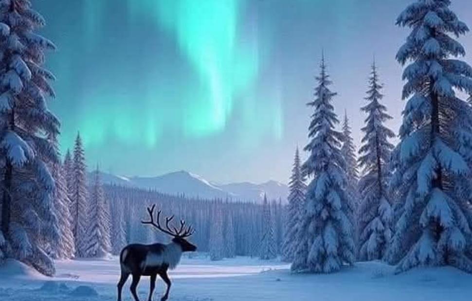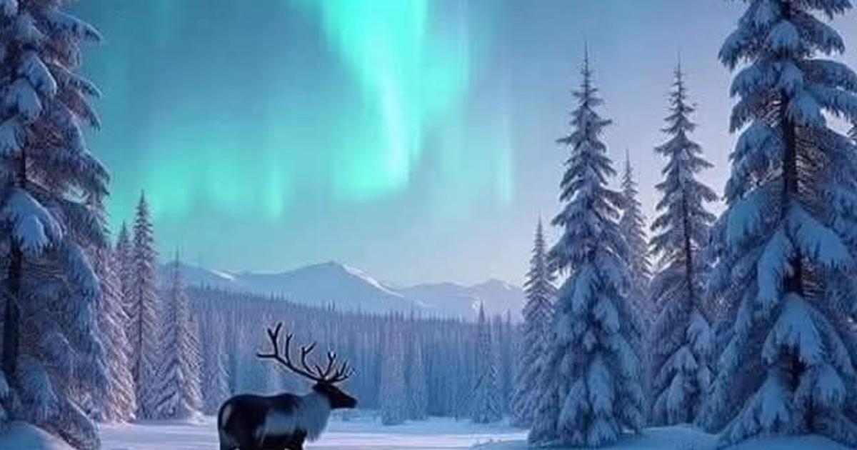 Τάρανδος κάτω από το βόρειο Σέλας.