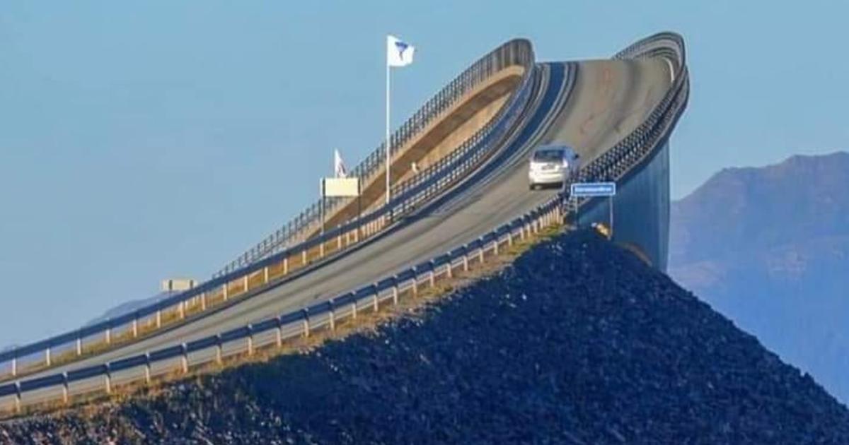 Ο δρόμος του Ατλαντικού στη Νορβηγία. Τα αυτοκίνητα «δέρνονται» από τους ισχυρούς ανέμους και τα τεράστια κύματα.