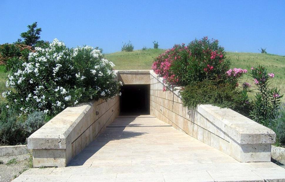 Η είσοδος του τάφου του Φιλίππου Β΄ στο Μουσείο της Βεργίνας. Η Βεργίνα είναι κωμόπολη στη Μακεδονία, στην περιφερειακή ενότητα Ημαθίας. Βρίσκεται 13 χλμ. νοτιοανατολικά της Βέροιας, στους πρόποδες των Πιερίων Ορέων, σε υψόμετρο 120 μέτρων από τη θάλασσα.