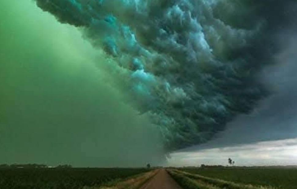 Ένα από τα πιο εντυπωσιακά φαινόμενα της ατμόσφαιρας είναι ο πράσινος ουρανός που κάνει την εμφάνισή του πριν από ακραία καιρικά φαινόμενα. Ο ουρανός παίρνει αυτή την πράσινη απόχρωση όταν υπάρχει υψηλό ποσοστό υγρασίας.