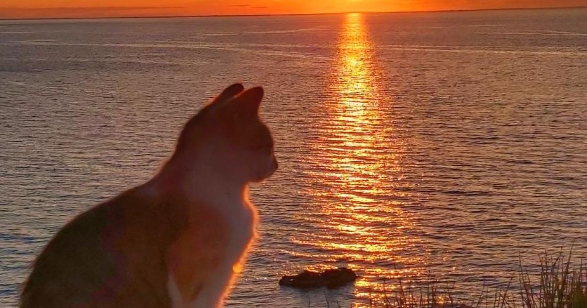 Γάτα απολαμβάνει το ηλιοβασίλεμα στη Σάμο.