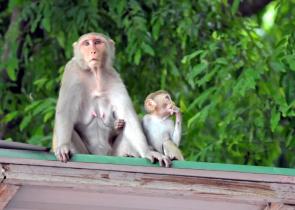 Οικογενειακό ενσταντανέ μαιμούδων σε πάρκο στην Ινδία