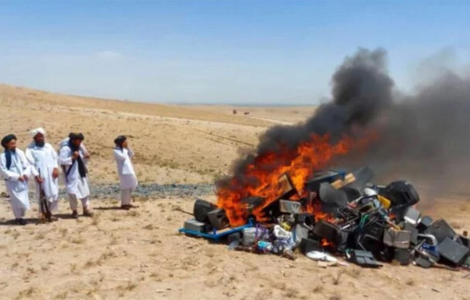 Μουσικά όργανα αξίας χιλιάδων δολαρίων έγιναν στάχτη στην επαρχία Χεράτ του Αφγανιστάν το Σάββατο, με τους Ταλιμπάν να υποστηρίζουν ότι η μουσική «προκαλεί ηθική διαφθορά».
