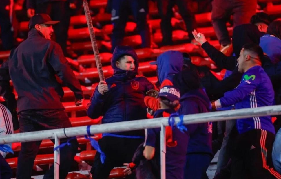 Hinchas de @Independiente 🇦🇷 y de @udechile 🇨🇱 se acusan mutuamente de haber iniciado la trifulca en el estadio Libertadores de América 🏟️, en Avellaneda.