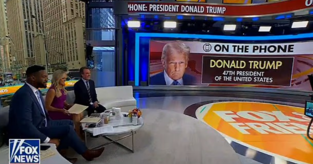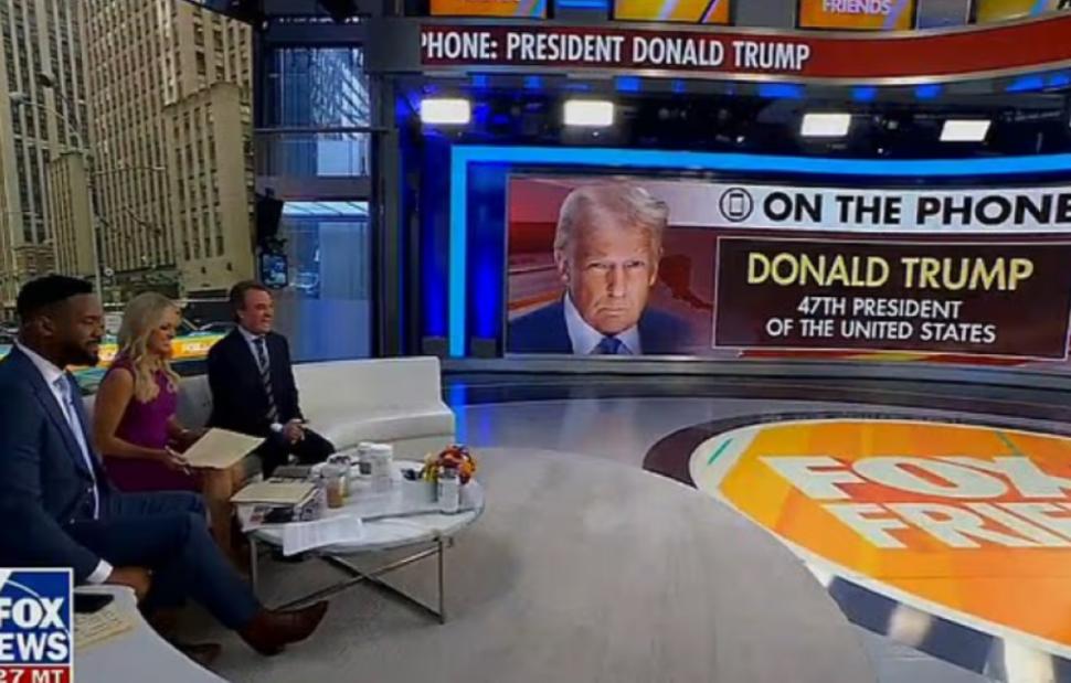 «Πρόεδρε Τραμπ, σας ευχαριστούμε που ήσασταν μαζί μας – ξέρουμε ότι έχετε πολλούς πολέμους να τερματίσετε και αυτό είναι πιο σημαντικό από οτιδήποτε άλλο», είπε με χαμόγελο, ενώ η Earhardt και ο Jones διατηρούσαν σοβαρό ύφος. «Εκτιμούμε που ήσασταν κοντά μας σήμερα το πρωί.»
