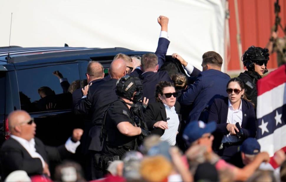 Οι εικόνες του Ντόναλντ Τραμπ με σηκωμένη τη γροθιά του στον αέρα, με το αίμα να τρέχει στο πρόσωπό του, και τις Μυστικές Υπηρεσίες να ορμούν πάνω του για να τον προστατεύσουν και να τον απομακρύνουν από το βήμα οπού μιλούσε στη συγκέντρωσή του στην Πενσυλβάνια δεν γράφουν απλώς ιστορία – μπορεί κάλλιστα να αλλάξουν την πορεία των προεδρικών εκλογών του Νοεμβρίου, αναφέρει με τη σειρά του και το BBC.