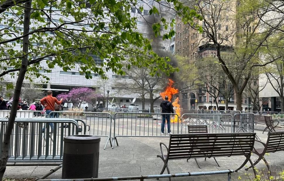!! A person just self-immolated outside Manhattan court, where Trump trial underway. Police slow to respond in part because of barricades around park pic.twitter.com/Pg86yITzPo