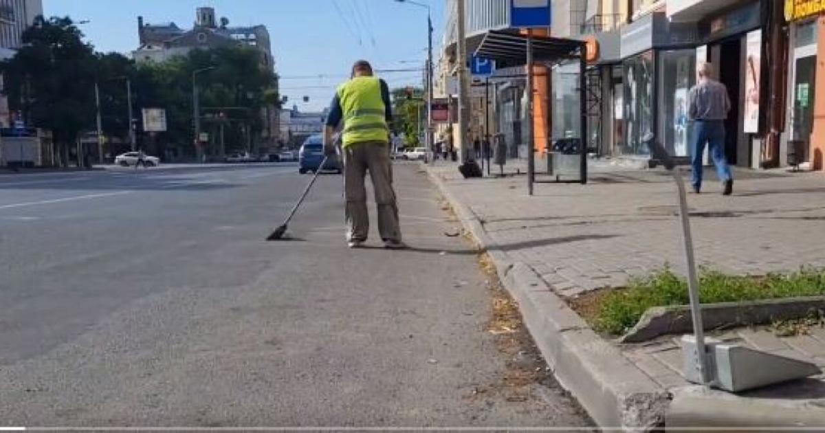 Σε βίντεο που αναρτήθηκε από το πρακτορείο στην εφαρμογή μηνυμάτων Telegram, το οποίο όπως αναφέρεται ελήφθη στην πόλη, φαίνεται ένας άνδρας να σκουπίζει σε έναν δρόμο και αυτοκίνητα να κυκλοφορούν σε άλλον.