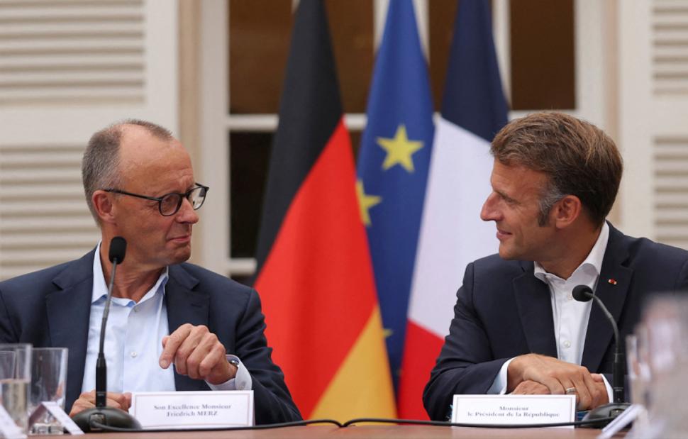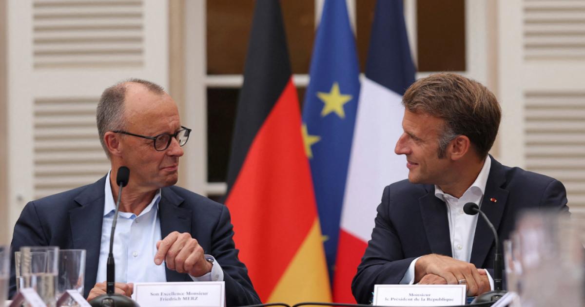 Ο Γάλλος πρόεδρος υποδέχτηκε τον Μερτς για δείπνο εργασίας στο Φρούριο Μπρεγκανσόν της νότιας Γαλλίας, όπου έκαναν δήλωση στους δημοσιογράφους, πριν ξεκινήσουν τις μεταξύ τους συνομιλίες.