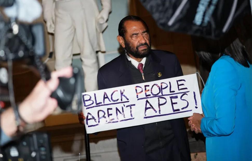 Ο βετεράνος αφροαμερικανός δημοκρατικός βουλευτής Αλ Γκριν, ο οποίος αντιπροσωπεύει το Τέξας, άνοιξε πλακάτ στο οποίο αναγραφόταν η φράση «οι μαύροι δεν είναι πίθηκοι» προτού αποβληθεί από την αίθουσα, καθώς ο ρεπουμπλικάνος πρόεδρος Ντόναλντ Τραμπ άρχιζε την ομιλία του για την «κατάσταση της ένωσης» ενώπιον της ολομέλειας και των δυο σωμάτων του Κογκρέσου.