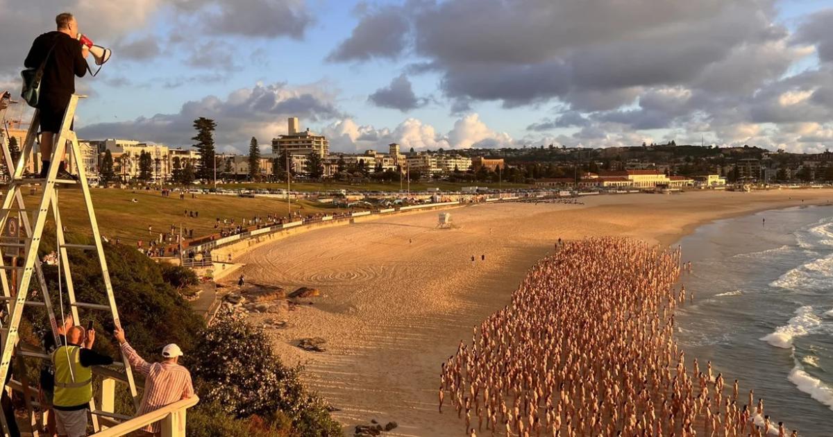 Ο Τούνικ, γνωστός για τις μαζικές γυμνές φωτογραφήσεις σε παγκόσμια ορόσημα, χρησιμοποίησε ένα μεγάφωνο για να δώσει κατευθύνσεις για διάφορες πόζες στους παρευρισκόμενους σε διάφορες πόζες στην παραλία Bondi, προτού πολλοί κάνουν γυμνή βουτιά στον ωκεανό.