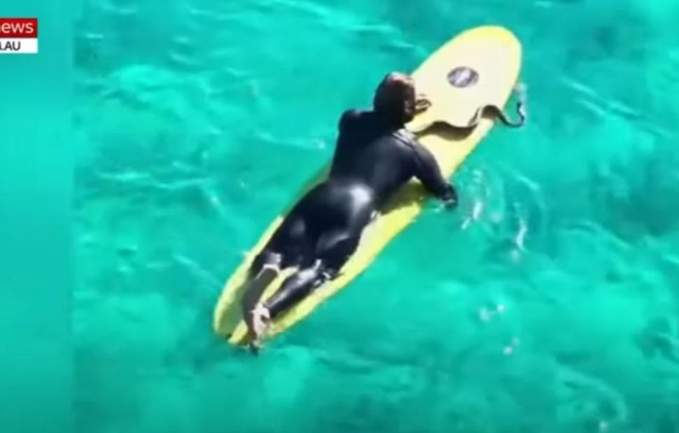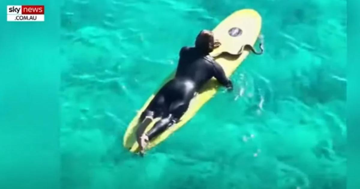 Εντύπωση έχει προκαλέσει ένα βίντεο που δείχνει έναν άνδρα στην Αυστραλία να κάνει σερφ έχοντας τυλιγμένο γύρω από τον λαιμό του έναν πύθωνα.