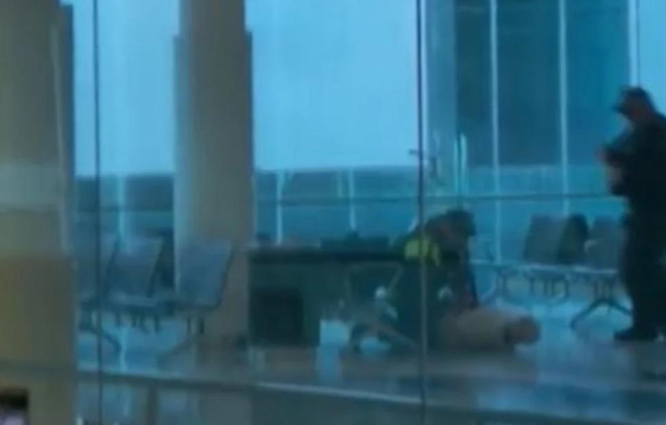 Σημάδια από σφαίρες είναι ορατά στην εξωτερική, γυάλινη πρόσοψη του αεροδρομίου, σύμφωνα με εικόνες που μεταδόθηκαν από το δημόσιο αυστραλιανό τηλεοπτικό δίκτυο ABC.