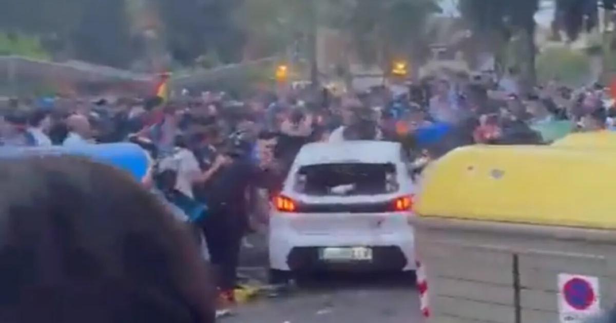 Another take of the car running over the fans outside of Espanyol’s stadium. 🇪🇸