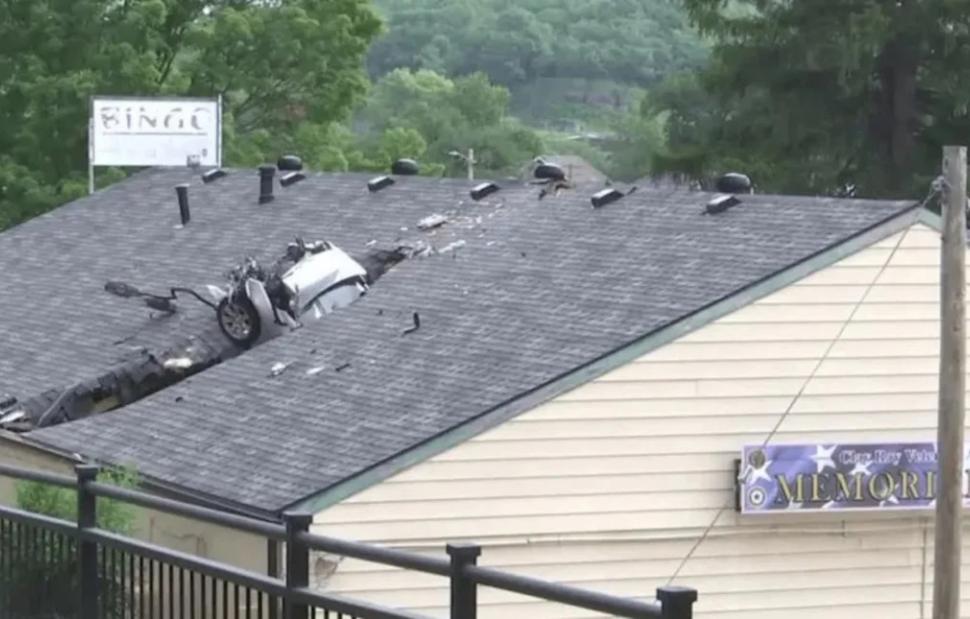 Μια απίστευτη σκηνή εκτυλίχθηκε στο Μιζούρι των Ηνωμένων Πολιτειών όταν ένα αυτοκίνητο καρφώθηκε στην οροφή κτιρίου για βετεράνους του αμερικανικού στρατού.