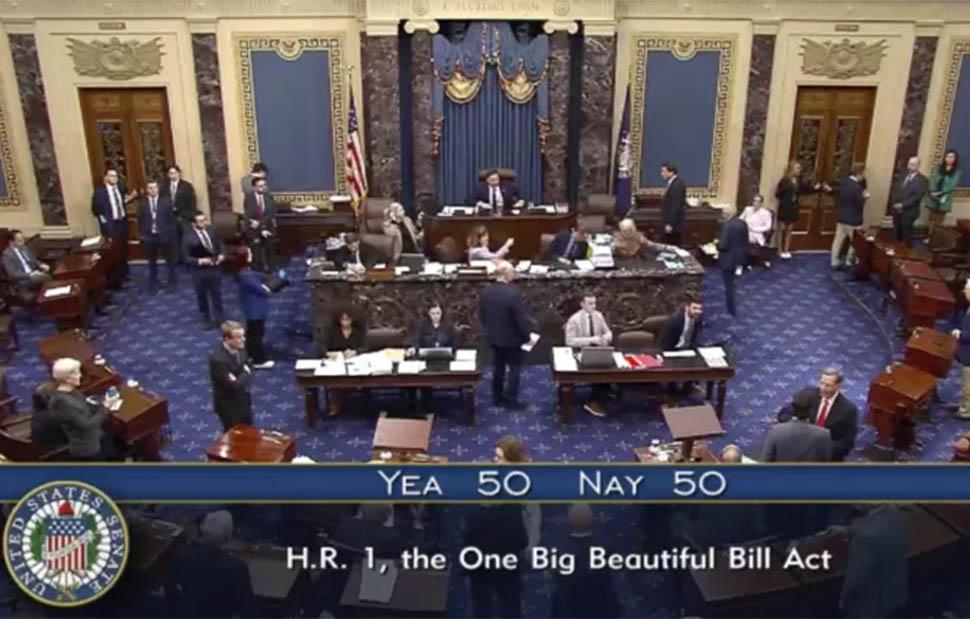 Η Γερουσία ενέκρινε το μέτρο με 51 ψήφους υπέρ και 50 κατά, με τον Αντιπρόεδρο Τζέι Ντι Βανς να έχει την κρίσιμη ψήφο, αφού τρεις Ρεπουμπλικανοί - ο Τομ Τίλις από τη Βόρεια Καρολίνα, η Σούζαν Κόλινς από το Μέιν και ο Ραντ Πολ από το Κεντάκι - ένωσαν τις φωνές τους με τους 47 Δημοκρατικούς και καταψήφισαν το νομοσχέδιο.