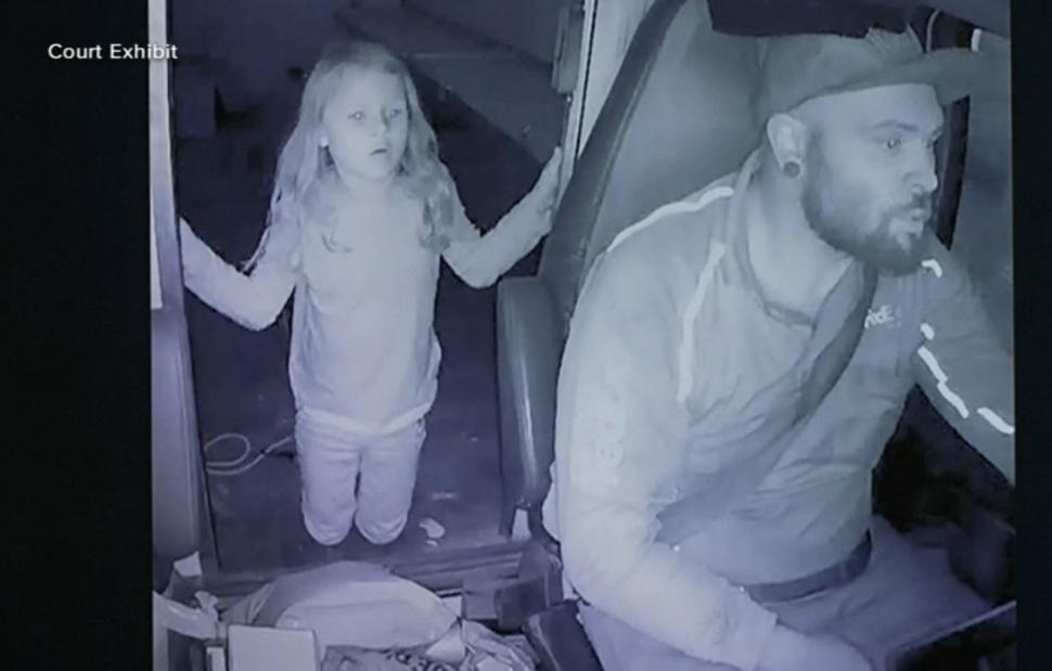 Στα πλάνα από την κάμερα στο φορτηγό της FedEx στο οποίο σημειώθηκε το έγκλημα τον Νοέμβριο του 2022, αρχικά φαίνεται ο Χόρνερ μόνος αλλά στη συνέχεια καταγράφεται να ανεβάζει την 7χρονη στο φορτηγό, να κάθεται πίσω από το τιμόνι και να φεύγουν.
