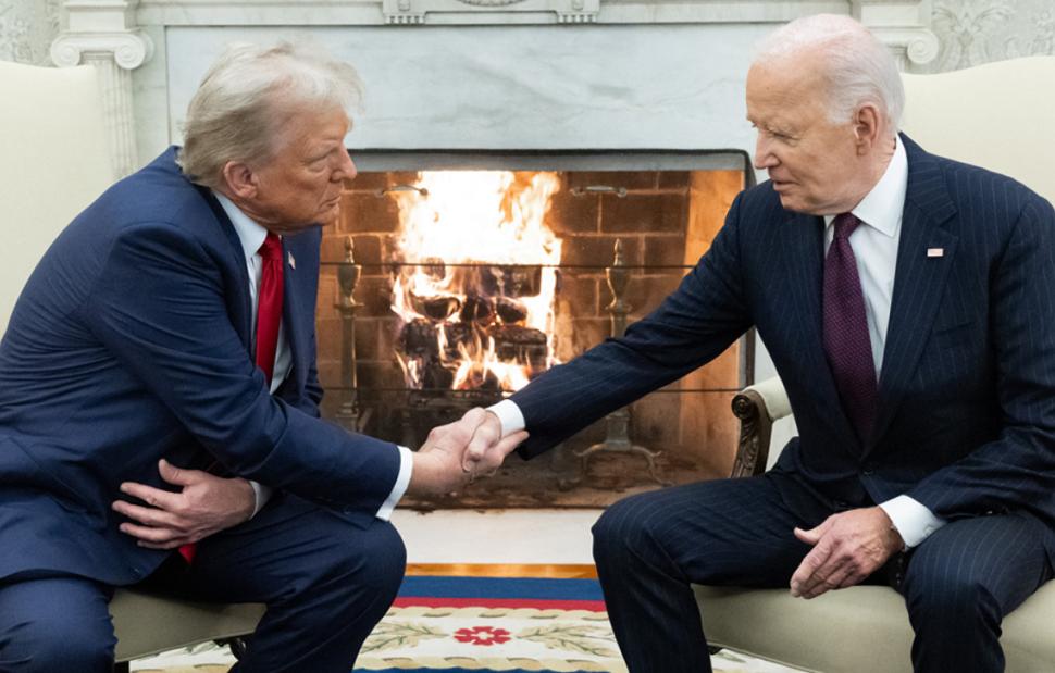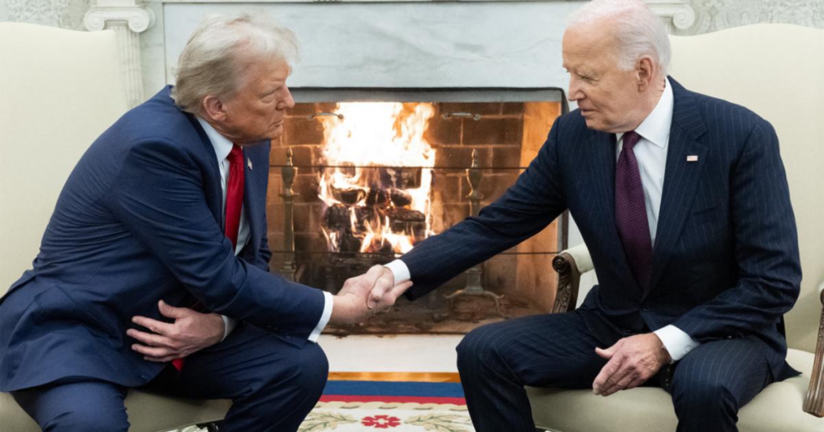 Ο Τζο Μπάιντεν υποδέχτηκε στον Λευκό Οίκο τον νεοεκλεγέντα Ντόναλντ Τραμπ, στο πλαίσιο της διαδικασίας μεταβίβασης της εξουσίας. Ο Ντόναλντ Τραμπ επέστρεψε για πρώτη φορά στην Ουάσινγκτον έπειτα από τη νίκη στις εκλογές της περασμένης εβδομάδας.