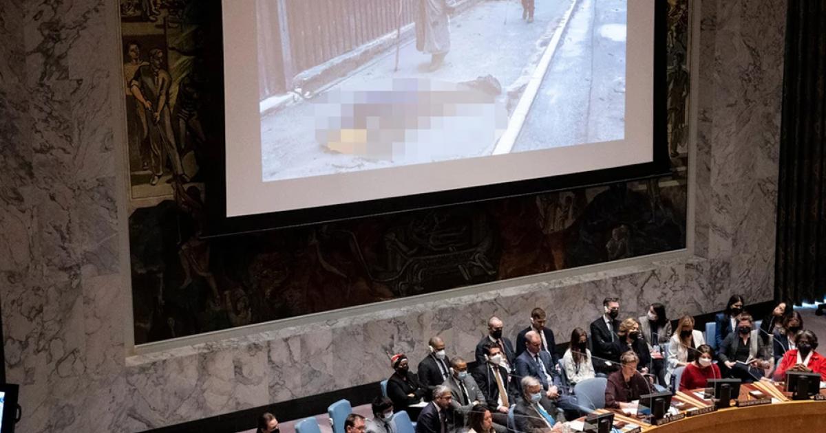 This video was shown by @ZelenskyyUa at a meeting of UN Security Council, which was convened because of #BuchaMasacre.