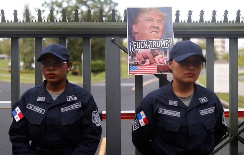 «Τραμπ, ζώο, κάτω τα χέρια από τη Διώρυγα», φώναζαν ρυθμικά διαδηλωτές, που έκαψαν πορτρέτα του Ρεπουμπλικάνου και της αμερικανίδας πρεσβεύτριας στον Παναμά, Μαρί Κάρμεν Απόντε.
