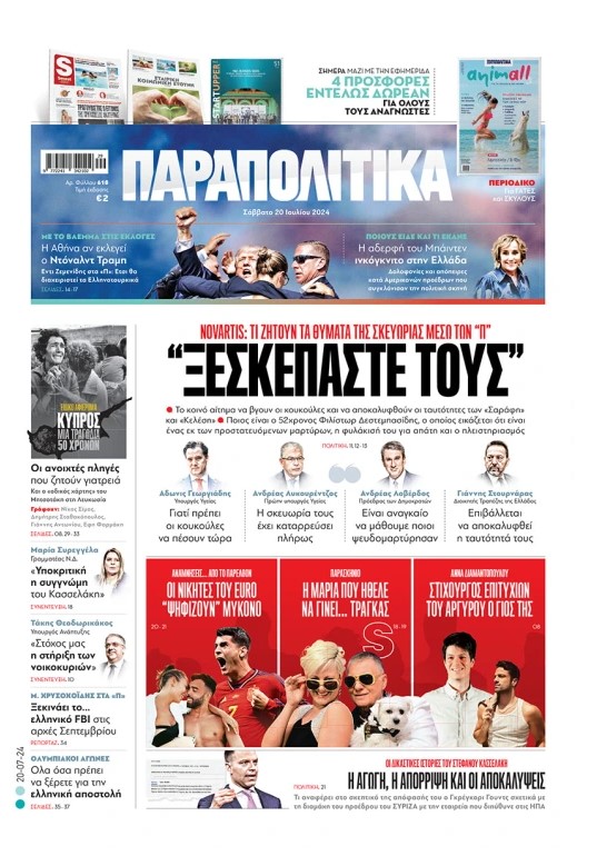 Αύριο, Σάββατο 20 Ιουλίου, η εφημερίδα «Παραπολιτικά» κυκλοφορεί σε όλα τα περίπτερα της χώρας με πλούσια θεματολογία, πολλές αποκλειστικότητες, αλλά και με αποκαλυπτικά θέματα και ρεπορτάζ!