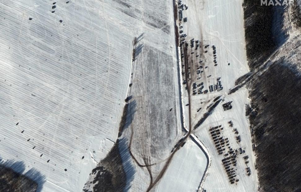 Οι φωτογραφίες της Maxar Technologies που έχει την έδρα της στις ΗΠΑ, δείχνουν ρωσικές στρατιωτικές μονάδες εξοπλισμένες με πυραύλους, πολλαπλούς εκτοξευτές ρουκετών και επιθετικά αεροσκάφη να έχουν αναπτυχθεί στη Λευκορωσία, σε τρεις περιοχές κοντά στα σύνορα με την Ουκρανία.