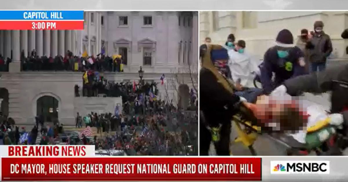 BREAKING: Woman rushed out of Capitol building on a stretcher, "covered in blood" pic.twitter.com/IKmMmHNyZC