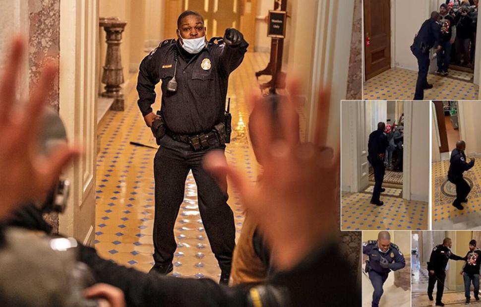 Ο αστυνομικός χάρη στην ετοιμότητα και την ευστροφία του κατάφερε να απομακρύνει τον όχλο που εισέβαλε στο κτίριο σώζοντας έτσι πολλές ανθρώπινες ζωές που ενδέχεται να χάνονταν στα επεισόδια της περασμένης εβδομάδας.