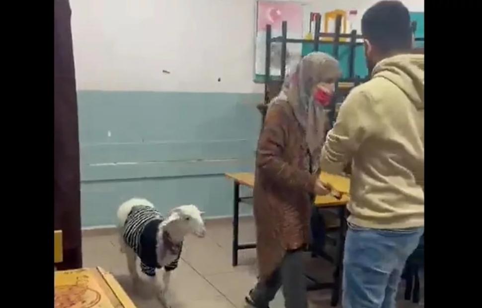 Άλλοι ψηφοφόροι έρχονται στα εκλογικά κέντρα με ιδιαίτερη συνοδεία, όπως μία κυρία που κατέφτασε με το...αρνί της για να ασκήσει το εκλογικό της δικαίωμα.