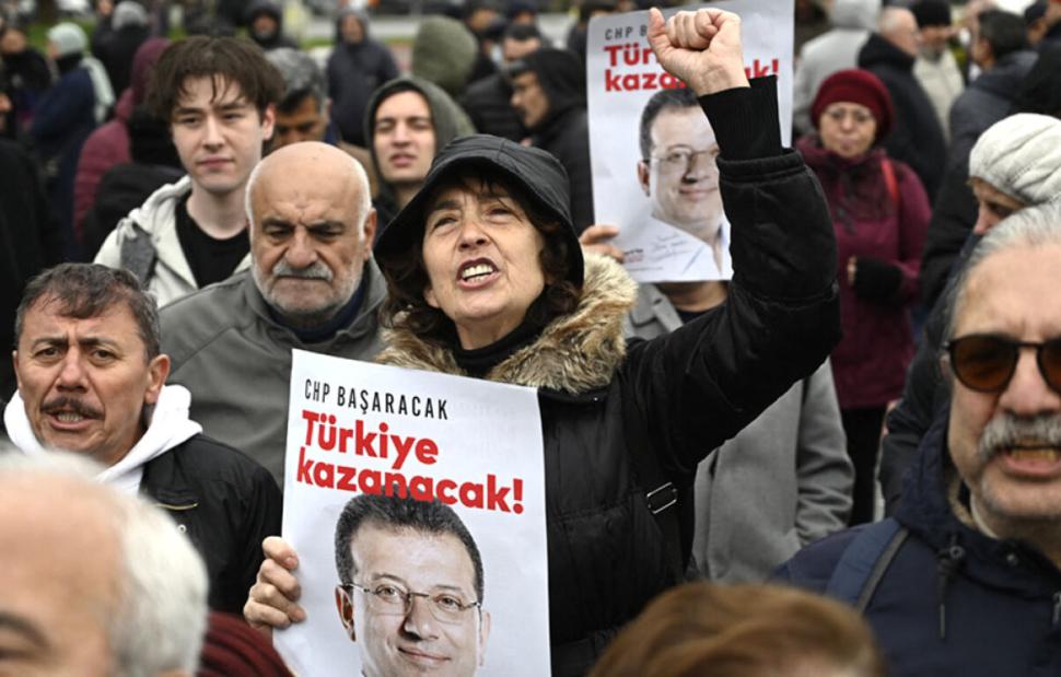 Ο αρχηγός του CHP, Οζγκούρ Οζέλ διαβεβαίωσε ότι 300.000 διαδηλωτές συγκεντρώθηκαν χθες το βράδυ στην Κωνσταντινούπολη, μόλις έληξε η νηστεία του Ραμαζανιού, για να στηρίξουν τον προφυλακισμένο Ιμάμογλου, μολονότι ο Ερντογάν είχε διαμηνύσει νωρίτερα ότι δεν θα υποχωρήσει απέναντι στην «τρομοκρατία του δρόμου».