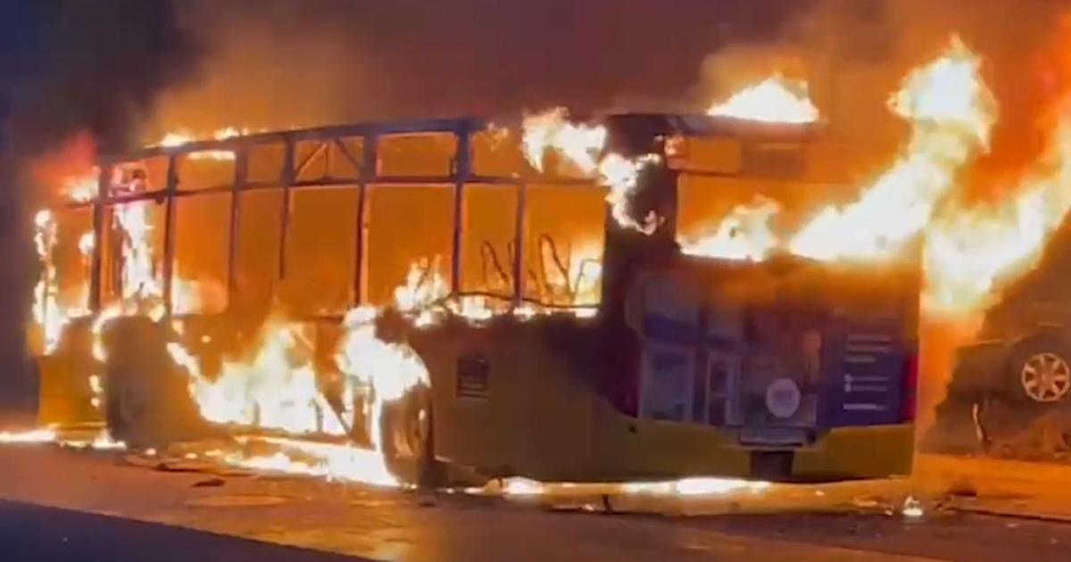 Μαρτυρίες μιλούν για ένα άτομο που αυτοπυρπολήθηκε, αφού έριξε πάνω του εύφλεκτο υγρό, μέσα στο λεωφορείο. Μεταξύ των τραυματιών, ένα άτομο διακομίστηκε στο νοσοκομείο με ελικόπτερο.