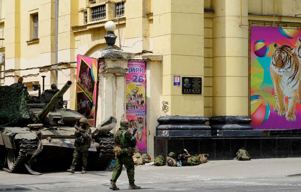 Βίντεο έδειξε τεθωρακισμένα οχήματα του ρωσικού στρατού στη νότια ρωσική πόλη Ροστόφ-ον-Ντον, κοντά στη γραμμή του μετώπου του πολέμου στην Ουκρανία, όπου δρούσαν οι μαχητές του κ. Prigozhin.