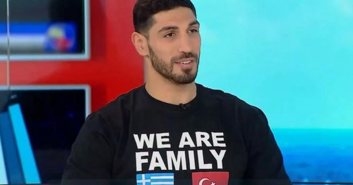Φορώντας ένα μπλουζάκι, με την ελληνική και τουρκική σημαία που έγραφε «Είμαστε οικογένεια», ο Ενές Καντέρ, o Τούρκος άσος του NBA, που έχει κυνηγηθεί από το καθεστώς Ερντογάν, θέλησε να στείλει το δικό του μήνυμα, μέσω της εκπομπής «Κοινωνία Ώρα MEGA».