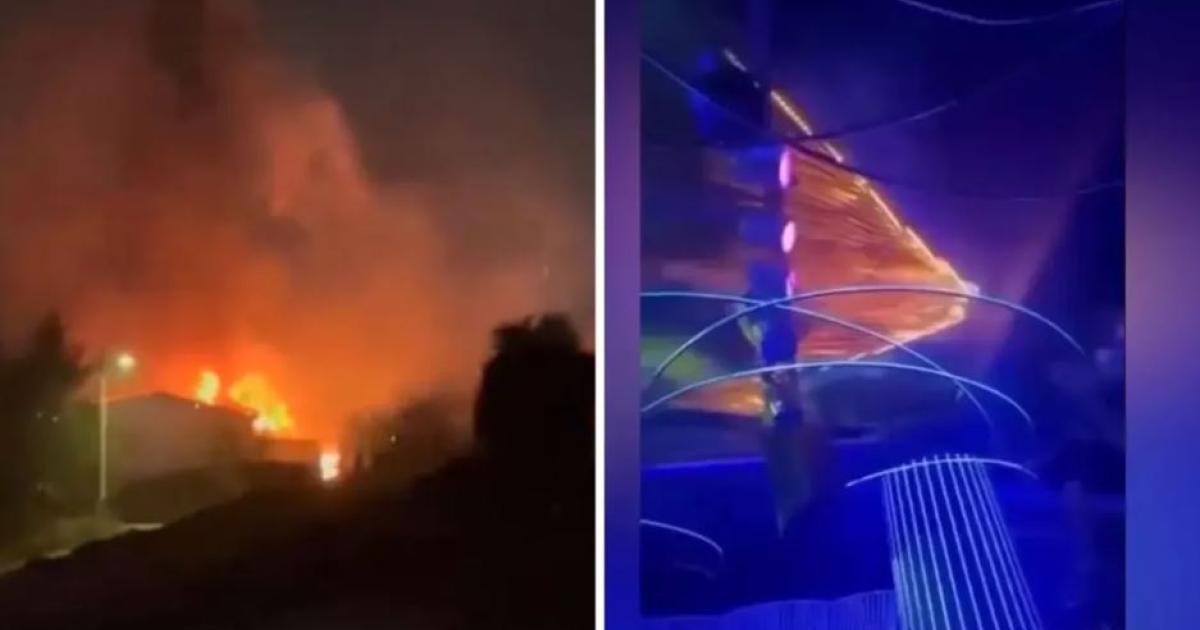 Η συναυλία των DNK ξεκίνησε τα μεσάνυχτα και η πυρκαγιά ξέσπασε γύρω στις 4 το πρωί. Σε άλλα βίντεο φαίνονται τεράστιες φλόγες που έχουν ζώσει ένα κτίριο και πυροσβεστικά οχήματα στην είσοδο της ντισκοτέκ.