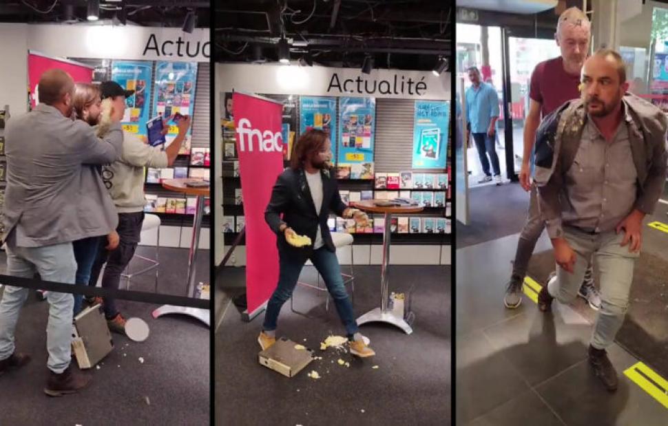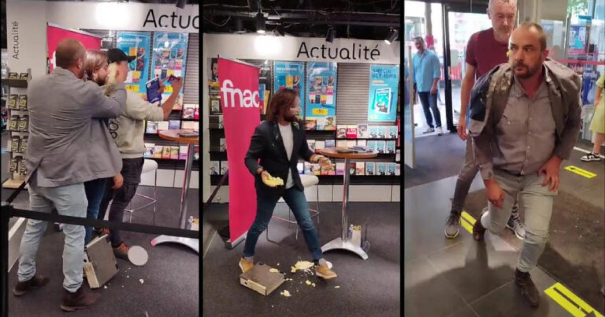 Τάρτα έριξε στο πρόσωπο του ηγέτη του φιλελεύθερου κόμματος της Βαλλονίας MR, Ζορζ-Λουί Μπουσέ ένας άνδρας ενώ υπέγραφε το νέο του βιβλίο σε κατάστημα της Λιέγης.