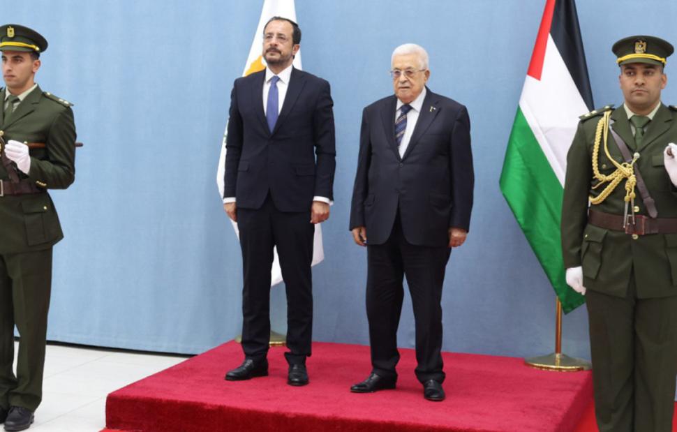 Ο Κύπριος πρόεδρος επανέλαβε τη σταθερή θέση της Κυπριακής Δημοκρατίας για επίλυση του Παλαιστινιακού στη βάση δύο κρατών και τον ευχαρίστησε για τη στάση που τηρεί η Παλαιστίνη στο Κυπριακό.