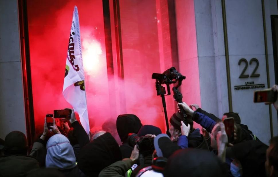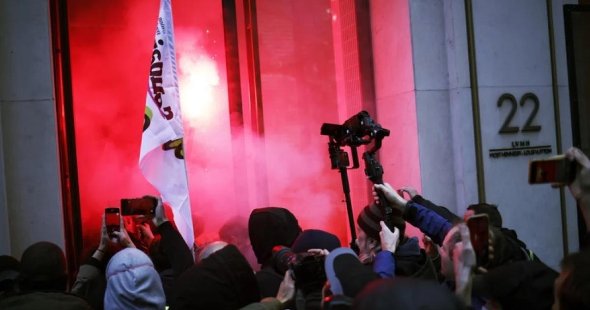 Διαδηλωτές εισέβαλαν για λίγη ώρα στα κεντρικά γραφεία της Louis Vuitton στο Παρίσι την Πέμπτη κατά τη διάρκεια της διαδήλωσης ενάντια στα σχέδια του Εμανουέλ Μακρόν για τη μεταρρύθμιση του συνταξιοδοτικού, ανάβοντας φωτοβολίδες στο κτήριο στη λεωφόρο Montaigne.