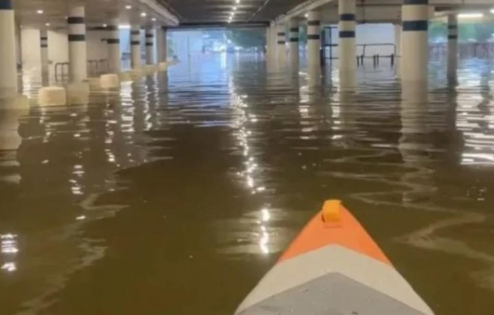 Τον γύρο των κοινωνικών δικτύων κάνει βίντεο με έναν άνδρα να κινείται με καγιάκ στο πλημμυρισμένο πάρκινγκ σούπερ μάρκετ E.Leclerc στο Σομίρ (Μαιν-ε-Λουάρ) στη Γαλλία.