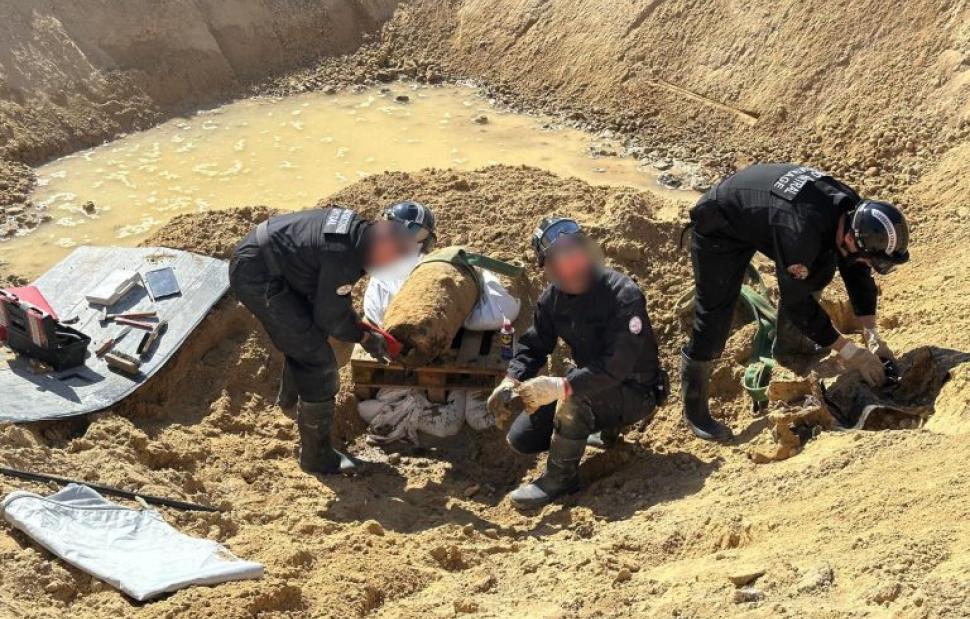 Οι εικόνες της επιχείρησης έδειχναν το βαρύ, σκουριασμένο μεταλλικό λείψανο να βρίσκεται στον πυθμένα ενός αμμώδους λάκκου, σταθερά στερεωμένο από χοντρές, ακατέργαστες ξύλινες δοκούς ενσωματωμένες μπροστά από τσιμεντένιους τοίχους. Στη συνέχεια, απαιτήθηκαν εκτεταμένες εργασίες κάλυψης για την απόσβεση της έκρηξης.