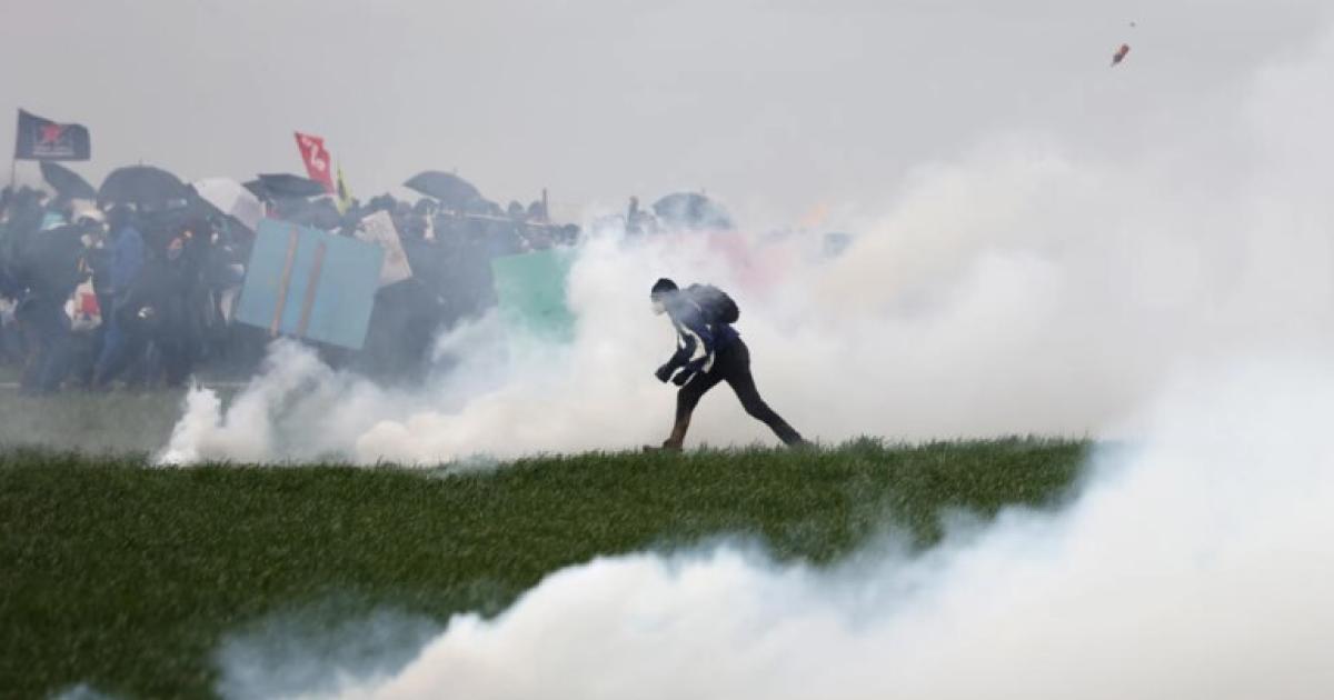 Το εργοτάξιο της περιοχής μετατράπηκε σε πεδίο μάχης μεταξύ ακτιβιστών που εκτόξευαν εκρηκτικά και 3.000 αστυνομικών.