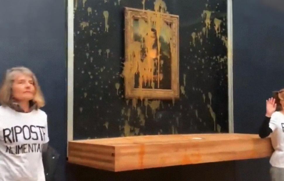 Συναγερμός σήμανε το πρωί της Κυριακής στο Μουσείο του Λούβρου στο Παρίσι, καθώς δύο νεαρές γυναίκες πέταξαν ντοματόσουπα σε έναν από τους πιο διάσημους πίνακες στον κόσμο, τη Μόνα Λίζα.