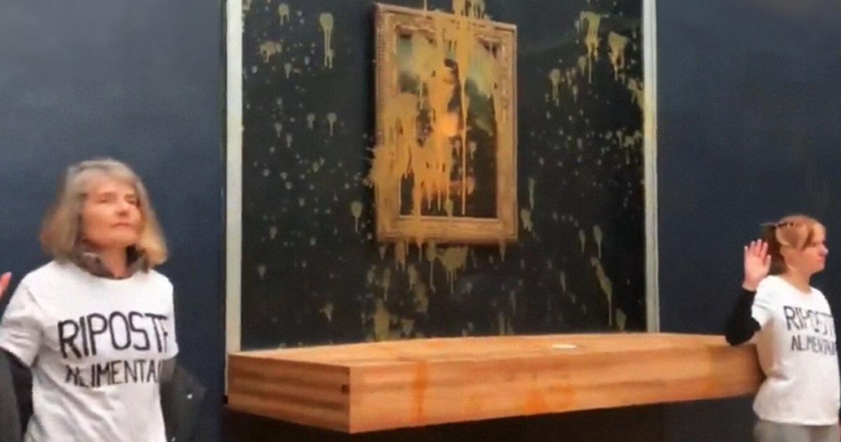 Ecoterrorists throw soup on Mona Lisa painting in Louvre Museum(Paris-France) / Ecoterroristen gooien soep op het schilderij van Mona Lisa in het Louvre (Parijs-Frankrijk) pic.twitter.com/ZwHs9x4mQ8