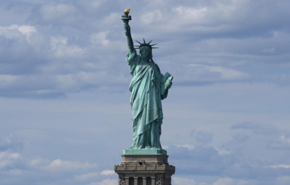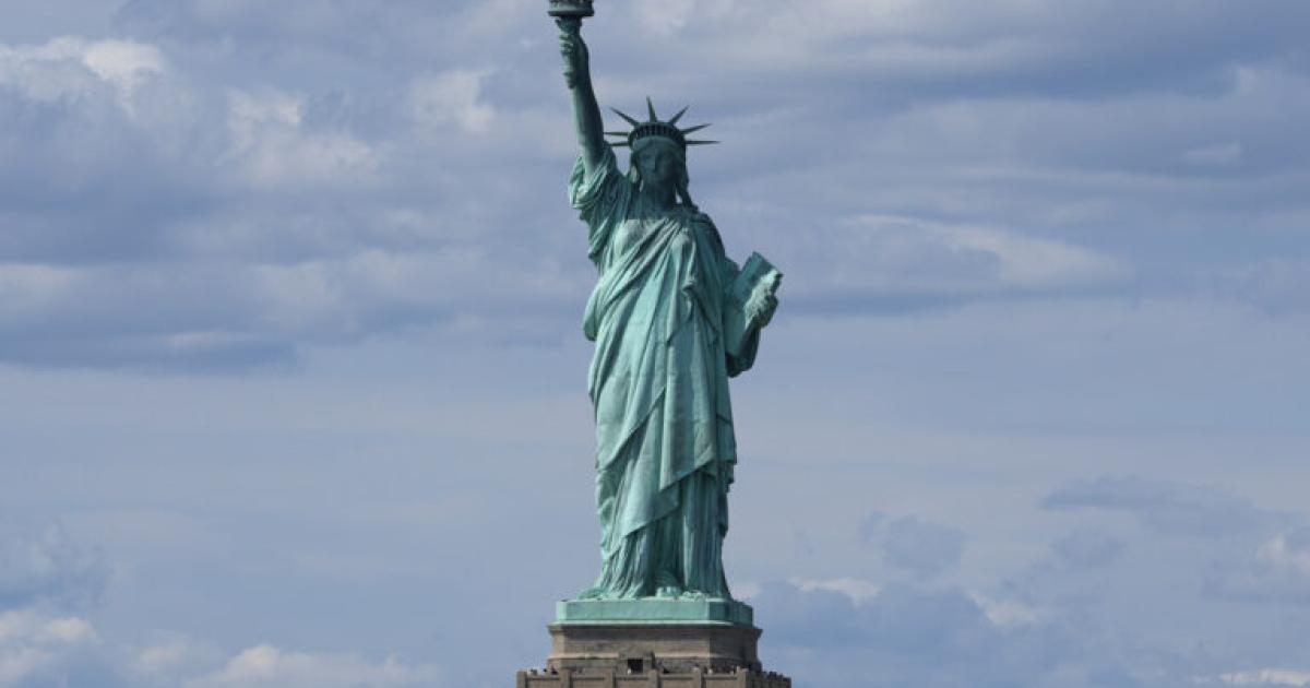 Σύμβολο των Ηνωμένων Πολιτειών, το μνημείο, έργο του Γάλλου Auguste Bartholdi, δωρίστηκε από τον γαλλικό λαό στους Αμερικανούς σε ένδειξη φιλίας. Τα αποκαλυπτήρια έγιναν στις 28 Οκτωβρίου 1886 για την εκατονταετηρίδα της Διακήρυξης της Αμερικανικής Ανεξαρτησίας. Βρίσκεται στην Νέα Υόρκη, στο Λίμπερτι Άιλαντ, νότια του Μανχάταν.